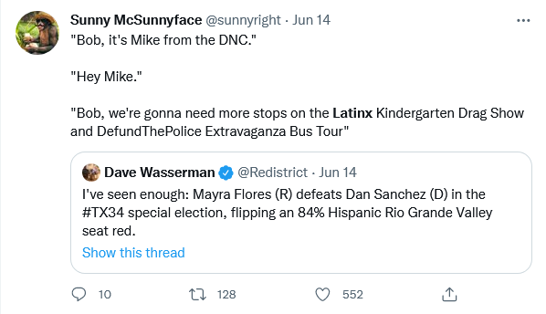 The Democrats thought that Hispanics would be like Blacks and vote for the Democrats in perpetuity. (That is not going to be the case, but we are talking about how Democrats view things.) Instead it turns out that Hispanics is a very broad category encompassing illegal aliens who crossed the border yesterday to people whose ancestors have been here since before the American Revolution. The group comes from many different nations and groups, with stark differences among them, which a broad umbrella term like Hispanics obscures. Trump unlocked the fact that most Latinos and Latinas respond positively to a strong economy, patriotism and appeals to family and traditional values. The Democrats have gone out of their wayto repulse them with their bizarre social agenda, typified by their insistence on the made up word Latinx which makes no sense in a Romance language like Spanish where word gender is a natural part of speech. Biden has less support among Hispanics than among the typical voter. If Demography is Destiny, something that Democrats have been claiming for decades, they are in the process of cementing minority party status for themselves for decades to come.