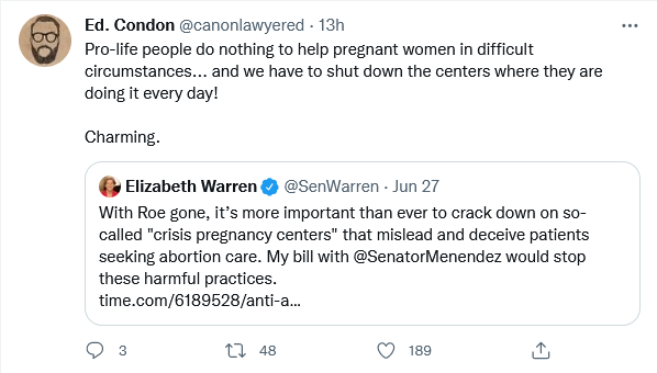 Especially now that times are tougher for the abortion industry (and for the politicians like Warren who’ve gotten used to the abortionists’ campaign contributions).