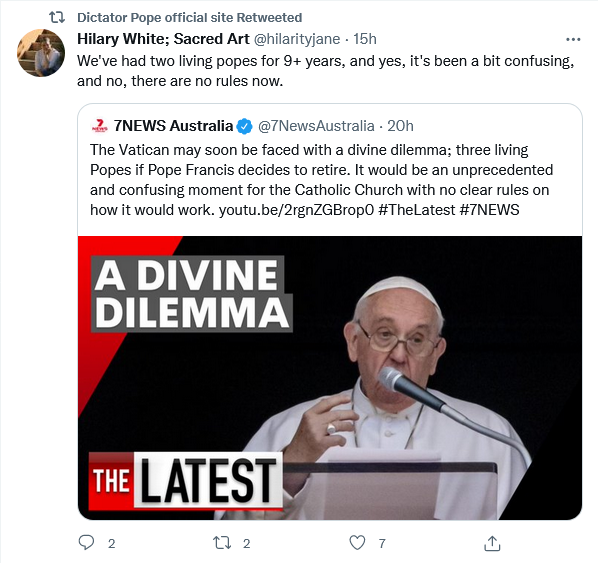 “Not sure it matters either way. What’s going to matter is who the next Pope will be. And how to performance manage the dead weight into retirement.”