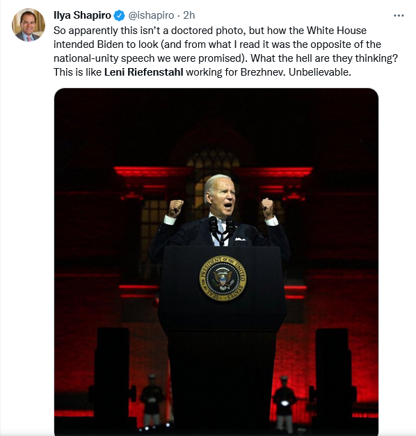 Everytime I think Biden and crew can’t be dumber they outdo themselves. Seriously who gives a speech warning people about how dangerous Republicans are to Democracy while having a background that looks like the Soviet Union and Hitler had a baby? pic.twitter.com/sukqTswI3C