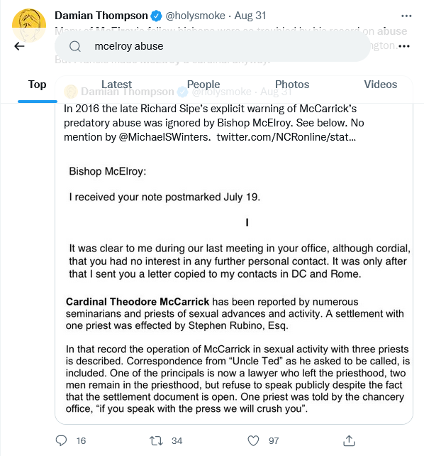 McElroy is proof that the only thing that matters to the pontiff is singing from his song sheet.