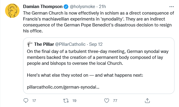 So on one hand the Pope is all powerful leader who can sack a Bishop at his whim, whilst at the same time the German Bishops have just formed their own self-governing body without approval from the Pope. And are getting away with it.
