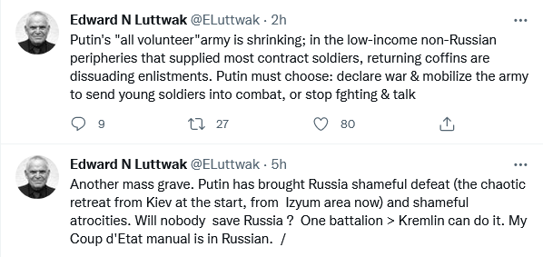 ISW Non-Resident Fellow Nataliya Bugayova had warned in April 2022 that “Bucha is an observable microcosm of a deliberate Russian terror campaign against Ukrainians. Similar intentional atrocities are happening throughout Russian-occupied areas in Ukraine.”[5] Ukrainian officials will likely continue to find evidence of Russian war crimes and atrocities as Ukrainian forces liberate occupied areas.