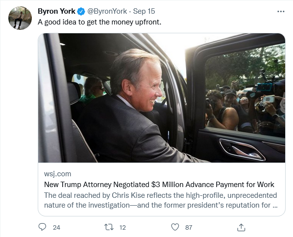 Trump had strong legal arguments to make in the wake of the 2020 election, but too often he was represented in court by fifth rate attorneys, barely able to handle a speeding ticket case. He may have learned at least part of his lesson. The attorneys representing him thus far in the documents case strike me as competent, albeit not brilliant.