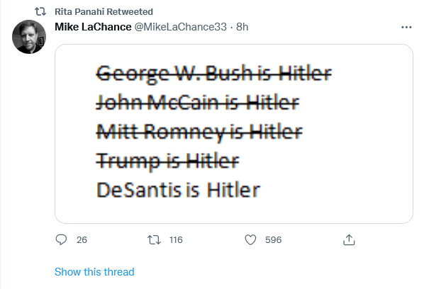 DeSantis is Satan. Fifty migrants flown to MV is an OUTRAGE. Fifty-one died in the back of a semi is a statistic.