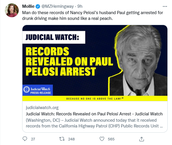Go here to read the rest. Probably the first time Paul Pelosi, or his wife, had been held accountable for anything in decades. Pro tip: When stopped for DUI the I’m someone important ploy rarely works anymore. Too much attention tends to be paid, the stops are recorded instantly usually and cops are trained to realize that cutting favors can be disastrous for them if they are found out.