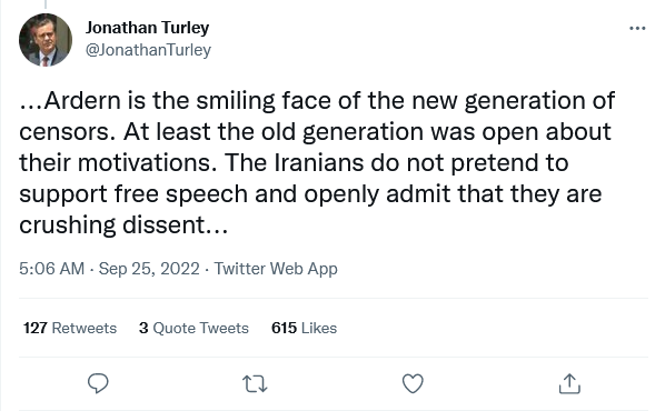 Agree Art, she is out of her depth as PM. She thinks her popularity decline is due to the cost of living in NZ. No Ms Ardern, people don’t like you because you hide your incompetency by controlling the rights of New Zealanders. She went above and beyond during the Covid lockdown to make sure New Zealanders knew SHE was in charge. And now she is banging on about controlling global free speech. That to me is a prime example of an insecure and incompetent leader.