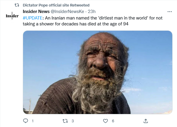 Go figure. Must be something in the water that ages us all. Or he probably didn’t take a bride (willing to put up with his stench) which added a few decades onto his life 😂