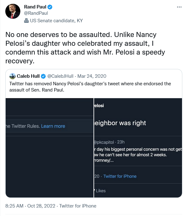 Plus, I’m so old I remember when one Pelosi daughter actually said Rand Paul’s neighbor was ‘right’ to assault the Senator.