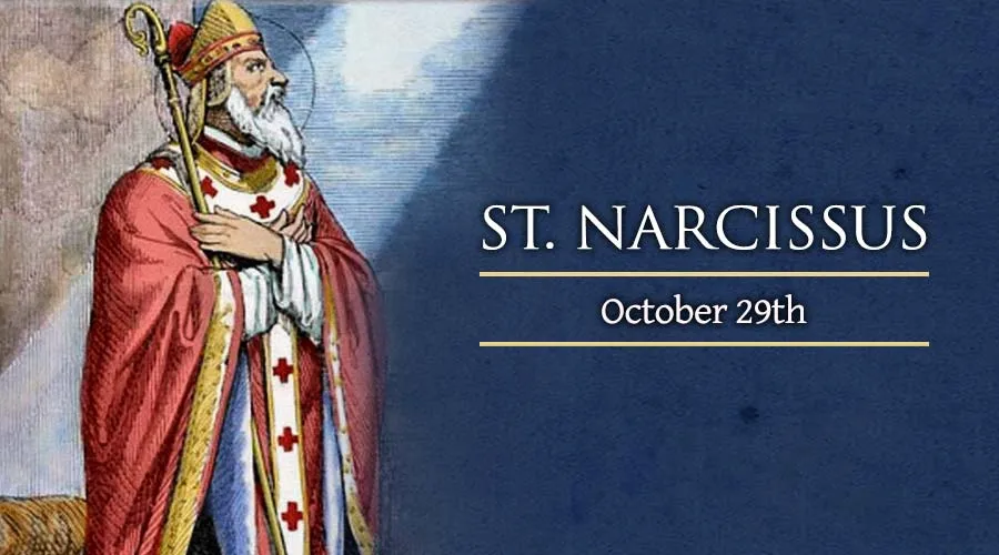 ST. NARCISSUS was born towards the close of the first century, and was almost fourscore years old when he was placed at the head of the church of Jerusalem, being the thirtieth bishop of that see. In 195, he and Theophilus, bishop of Cæsarea in Palestine, presided in a council of the bishops of Palestine held at Cæsarea, about the time of celebrating Easter; in which it was decreed that this feast is to be kept always on a Sunday, and not with the Jewish passover. Eusebius assures us, that the Christians of Jerusalem preserved in his time the remembrance of several miracles which God had wrought by this holy bishop; one of which he relates as follows. One year on Easter-eve the deacons were unprovided with oil for the lamps in the church, necessary at the solemn divine office that day. Narcissus ordered those who had care of the lamps to bring him some water from the neighbouring wells. This being done, he pronounced a devout prayer over the water; then bade them pour it into the lamps; which they did, and it was immediately converted into oil, to the great surprise of the faithful. Some of this miraculous oil was kept there as a memorial at the time when Eusebius wrote his history. The veneration of all good men for this holy bishop could not shelter him from the malice of the wicked. Three incorrigible sinners, fearing his inflexible severity in the observance of ecclesiastical discipline, laid to his charge a detestable crime, which Eusebius does not specify. They confirmed their atrocious calumny by dreadful oaths and imprecations; one wishing he might perish by fire, another, that he might be struck with a leprosy, and the third, that he might lose his sight, if what they alleged was not the truth. Notwithstanding these protestations, their accusation did not find credit; and, some time after, the divine vengeance pursued the calumniators. The first was burnt in his house, with his whole family, by an accidental fire in the night; the second was struck with a universal leprosy; and the third, terrified by these examples, confessed the conspiracy and slander, and by the abundance of tears which he continually shed for his sins, lost his sight before his death.