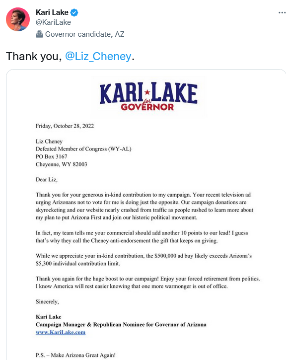 — Kari Lake (@KariLake) October 28, 2022