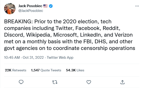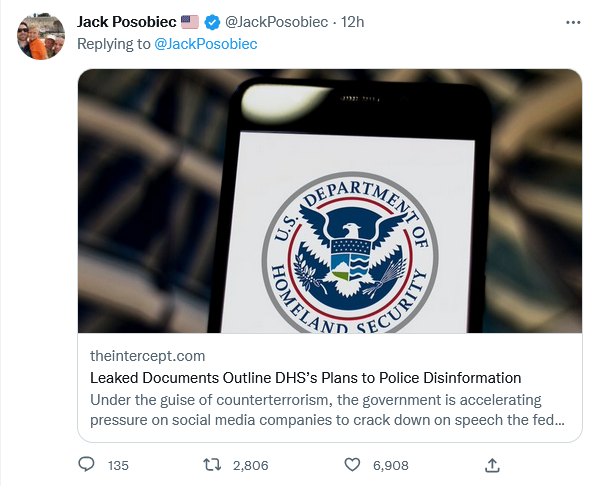 Go here to read the story. We live in a time when the poor conspiracy theorists simply can’t keep up. Senator Long, could you give us a hand as to what this type of government imposed censorship through private corporations sounds like?