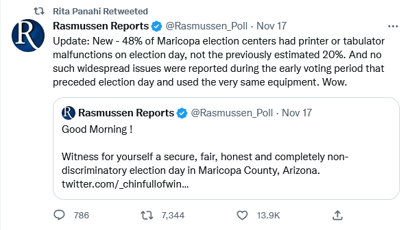 At last report (via PJ Media), Kari Lake has vowed to pursue legal remedies against this rather obvious exercise in fraud. I suspect she will prove to be better in picking her lawyers than Trump has been. She may get nowhere in the end, but she will not go quietly in any event.