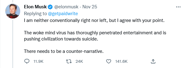 Side note: Disney, already tarnished with mindless wokeness is bringing back Bob Iger to replace Bob Chapek, who was not moving Disney at a fast enough pace at brain washing its customers.