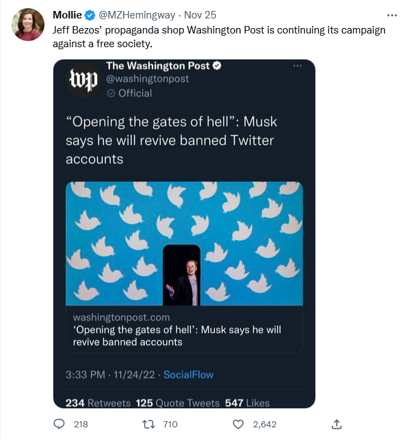 It’s sometimes instructive, although not really surprising, to see how lefties like Bezos and his minions characterize their perceived enemies. I had two Twitter accounts, one for Catholic/Christian issues and one political, and both were permanently banned in the great Twitter purge of early 2021 for no reason that was ever explained. My attempts to “appeal” (don’t laugh too hard) were simply ignored. But now, Czar Bezos informs us, reinstatement of my accounts, and millions of others banned for presumably the same non-reasons, would equate to “opening the gates of Hell.”