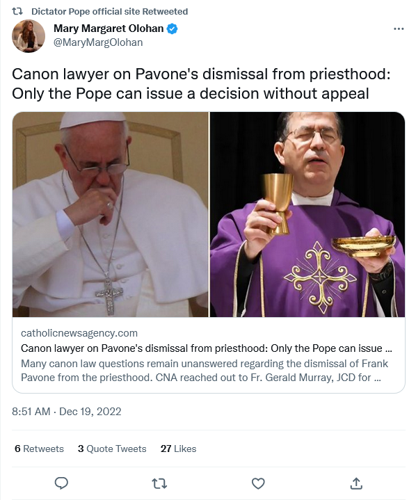 Another good take by Phil Lawler: https://www.catholicculture.org/commentary/in-pavone-case-vaticans-silence-is-damaging/