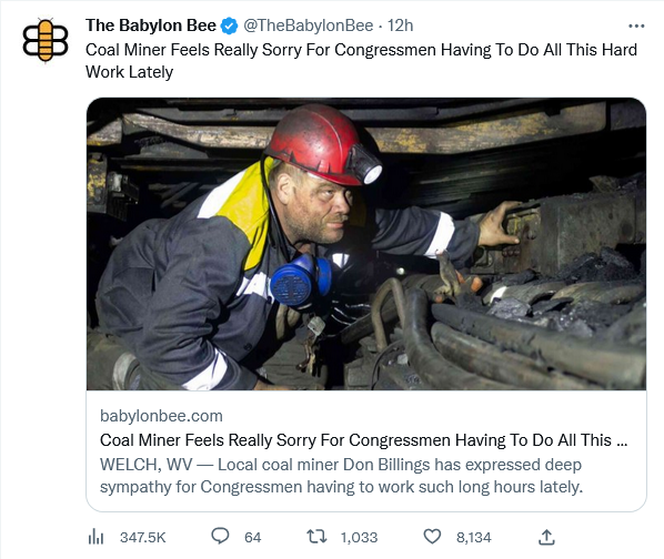 WELCH, WV — Local coal miner Don Billings has expressed deep sympathy for Congressmen having to work such long hours lately.
