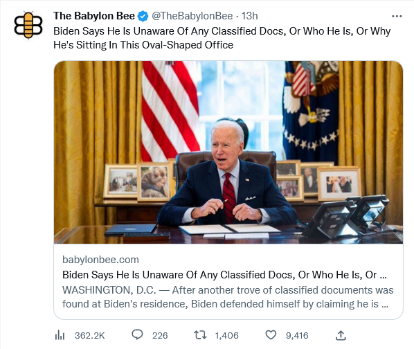 Biden said that he takes classified documents seriously. I somehow am not reassured that he does not giggle like a schoolgirl as he takes them.