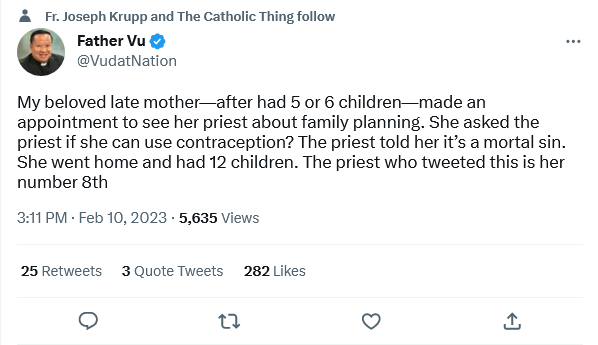 It should be obvious, to anyone who laments the shortage of answered vocations to the priesthood, that the Church’s failure adequately to support and enforce the teaching against contraception is at least partially responsible. The pool of potential candidates has been shrunk drastically as large Catholic families are now rare, rather than the norm.