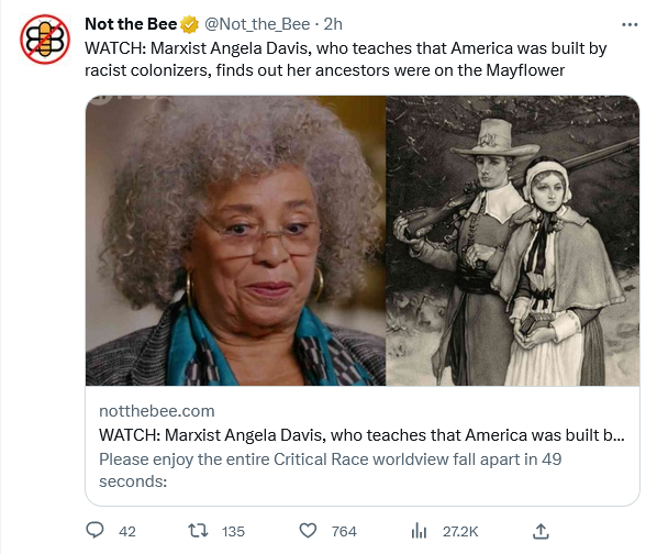 It gets better. She's also descended from a slave owner. On her father's side is a pilgrim. On her mother's side is a slave owner. Looks like Angela Davis owes some reparations. https://t.co/JuPld361Kg