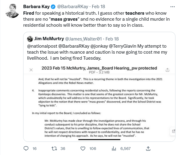 It takes courage to refute lies convenient for the powers that be. Go here to read about the phony controversy of alleged mass graves at schools for Canadian Indians. The completely fabricated story led to churches burning throughout Canada. Bravo to Jim McMurtry for refusing to teach lies.