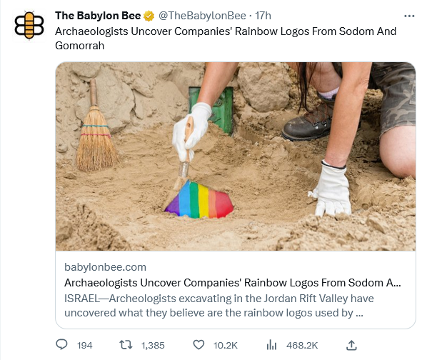 News that I missed, courtesy of The Babylon Bee: