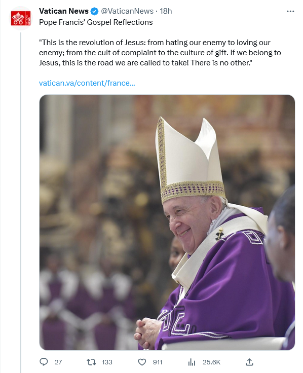 The word means “opponent”, not “mortal enemy”. Francis, as usual, puts his Scriptural illiteracy on full display for all to see.