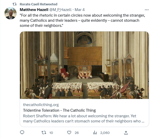 PF can beat the Trads the same way the GOP beats pro-lifers because he knows they really won’t go anywhere else and will take the beating. But appealing to libs feels nice, spreads the message and maybe gets more butts in seats. It does nothing to spread the faith, but it feels good and gets likes on social media.