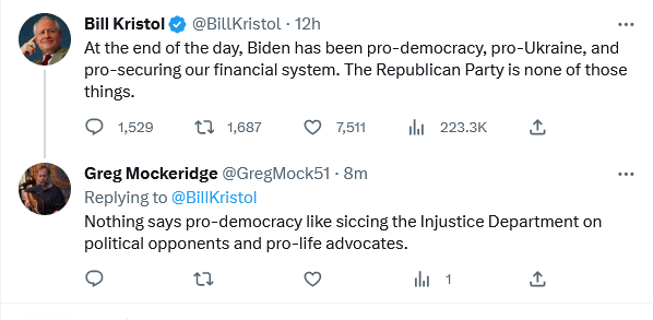 Someone should remind Kristol that we are a republic, not a democracy. And there isn’t much securing of the financial system when Biden and his family are taking foreign government bribes.