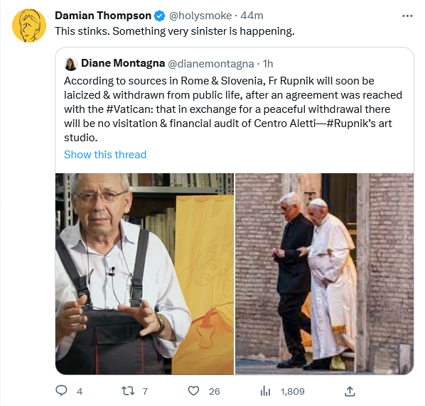 If the Vatican had to cut a deal to laicize Rupnik, he and Essjay Boys must have some dirt on them.