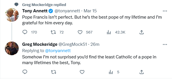 Francis? Least favorite, probably worst, but I think that St. Paul VI did more damage.