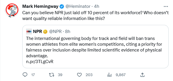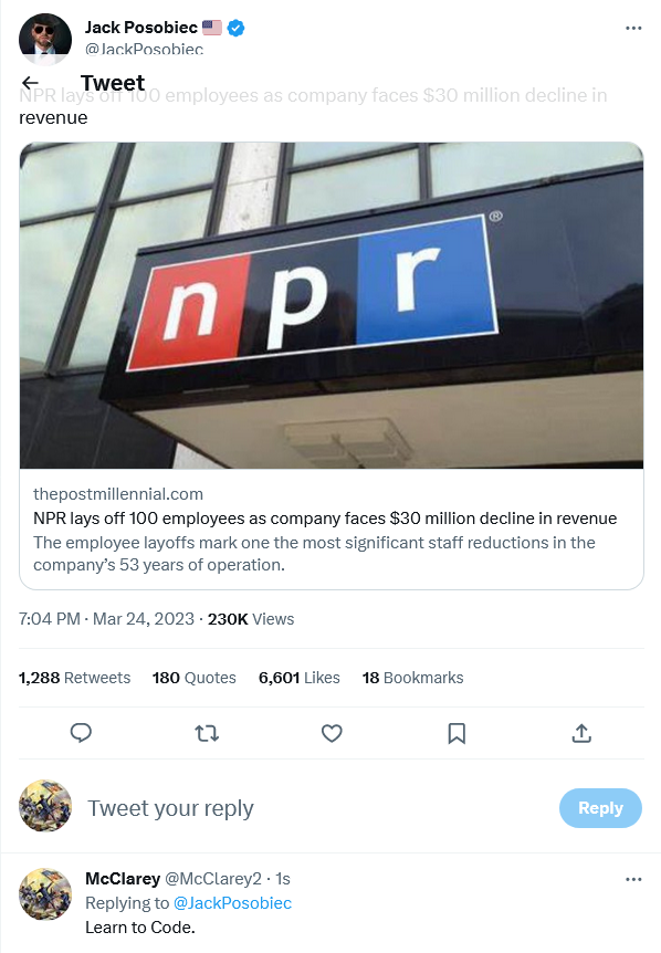 The other thing, and this was a problem from the beginning, was the funding arrangement, which (per Jonah Goldberg, who worked on PBS projects) was set up to not be transparent. We have the Smithsonian, the Library of Congress, the National Library of Medicine, the National Agricultural Library, and the National Archives. That’s ample federal funding for culture. All states have a public college and university network and commonly have state museums and libraries. Any public funding for philanthropic corporations trading in culture ought to be coming from county governments if it’s coming from anywhere.