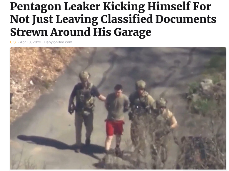 DIGHTON, MA — Military police have arrested Jack Teixeira for allegedly leaking classified documents that contained information on the war in Ukraine. Teixeira, an Air National Guardsman, is currently kicking himself for not just leaving documents strewn around an unlocked garage as the President did.