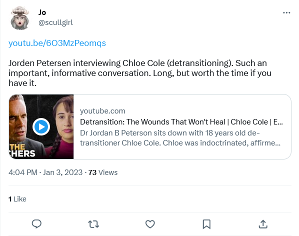 Dr Peterson has been a critic of gender identity for a while now. They will silence him with the right-wing fascist label but I’m afraid, to the detriment of the left, his work and his social media profile has become too large to ignore and is mainstream. He has an ability to succinctly get to the point very quickly.