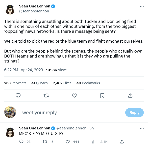 Ha! To complete the conspiracy CNN must hire Tucker and Fox Lemon. Then they both appear on the networks wearing mouse ears.