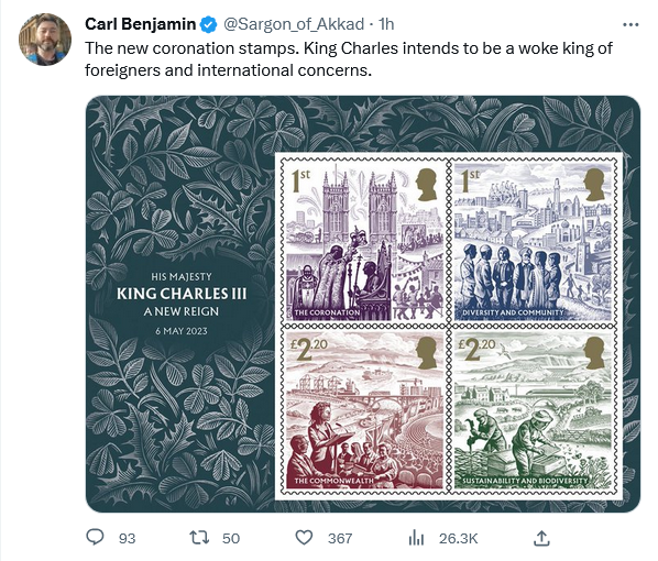 He isn’t dim, dangerous, deluded, or a dunce. The stamp set suggests he has some ill-considered opinions. I’m not seeing from the stamps that his viewpoint is more ill-considered than the default setting of the British elite (who allow immigration inflows 3x in excess of what’s prudent, including gobs of unassimilable Pakistanis).