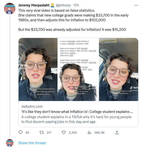 I’ll say this, people under 40 had no idea what inflation meant until recently. For those of us who still raise an eyebrow whenever we hear about a home mortgage rate in the single digits, this all feels bad but familiar. But the young’uns had nothing to prepare them for wealth and earnings getting eaten up forever.
