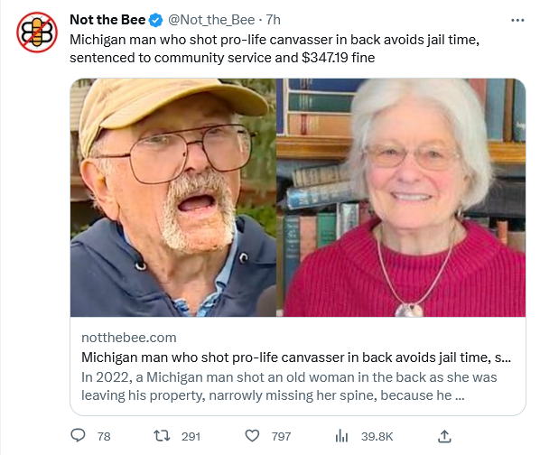 Meanwhile in North Baltimore this past Friday morning (5/23), two 70-year-old plus pro-life picketers outside a Planned Parenthood clinic were viciously attacked and beaten by an assailant. One of the men was tackled from behind and shoved hard to the pavement and suffered unspecified injuries.