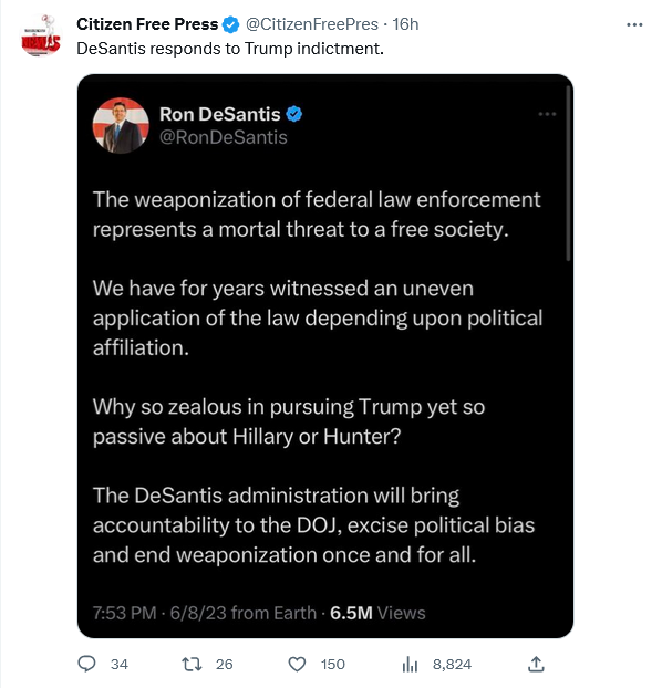 — DeSantis War Room 🐊 (@DeSantisWarRoom) June 9, 2023