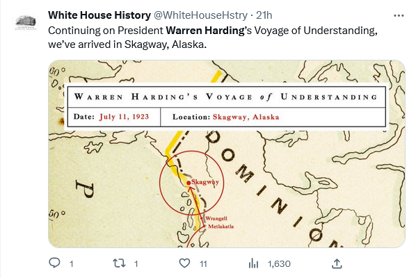 I was in Juneau, Alaska last week, which Harding was the first sitting president to visit.