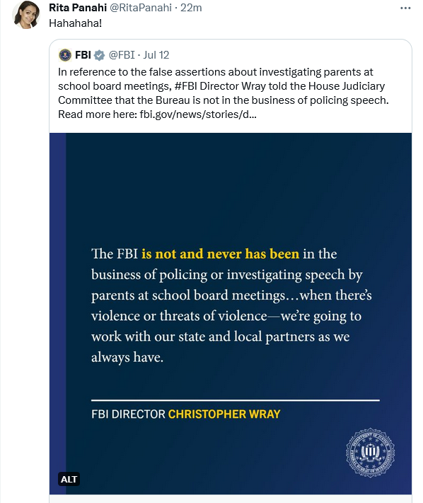 Between this and the testimony about the FBI spying on Trad Catholics I am reminded of a line from the series, My name is Earl a few years back, when Joy, Earl’s x says “ it ain’t the lying that hurts people Earl, it’s the finding out” , seems to be the FBI’s policy too,