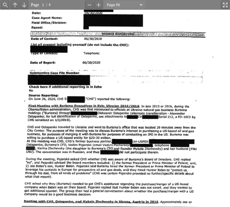 “The FD-1023 is a confidential human source (CHS) reporting document. The CHS documented many meetings between them and Zlochevsky. This one happened right after the 2016 election (emphasis mine):