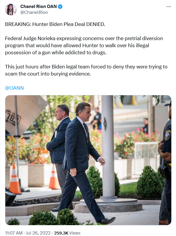 Amazing: the federal court judge presiding over Hunter Biden's case seems extremely uncomfortable that the plea deal is far too generous to Hunter — which is what the IRS whistleblowers have been saying — and she might reject it altogether, a very rare move.👇 https://t.co/Nfkv3zEY55