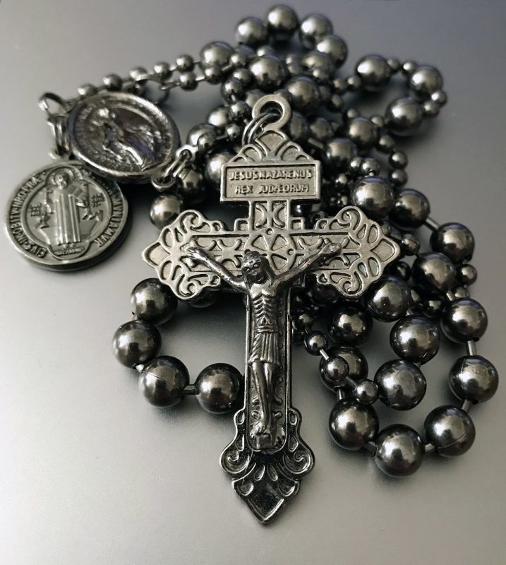 However, I never really had a prayer life, outside church. I had a rosary I was given for my first communion, and another my dad gave me, and one someone gave my older son for his first communion, which he didn’t like. And they were on my bedside, even. But the thing is I’m very ADD. Praying the rosary by myself was a non-starter.