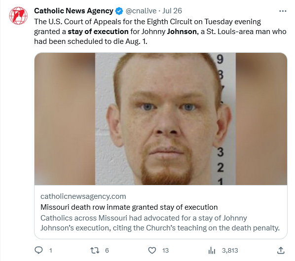 This guy is the poster child for what is wrong with the death penalty in practice. Hanging on the town square on Tuesday following a guilty verdict is long gone and any deterrent effect is lost since this stuff goes on for decades. I used to think that the public shouldn’t have to support them for decades, but my guess is that all the appeals cost more than the cost of warehousing murders even for decades. I wonder what Francis would say if we converted all of those post pandemic vacant NY office towers into a maximum security prison with the only release being if Snake Plissken gets you out.