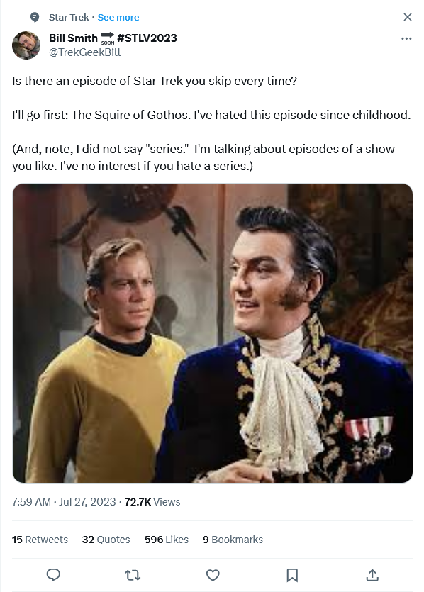 I’m familiar with only the original (1966-69) and the 1987-94 reboot. I disliked aspects of certain characters and certain plot resolutions, but I cannot recall any episodes I disliked. (I found the space hippies amusing).