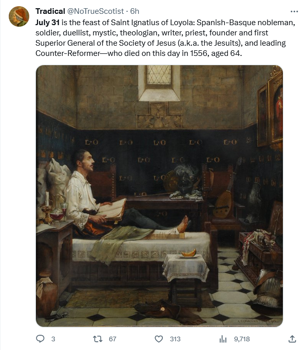 Thus from such unlikely material was the Society of Jesus founded, courtesy of God, a cannonball and a bored soldier with a very strong will who could shape himself into a man able to create and lead a world shaking order. Those who currently wear the title Jesuit are mostly unworthy sons, but the idea and the aim were good, and can be good again in the future.
