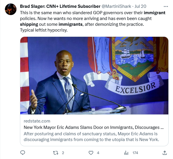 “There’s something extraordinarily ironic about top level Democrats crying over Republicans sending illegal immigrants to deep blue areas. You don’t get to champion your altruism while someone else foots the bill, then play victim when that bill comes due.”