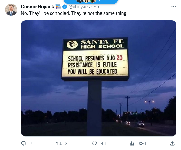 Of course education is an end, schooling only a means. I can school someone, but he has to accept, process and reflect on his own learning and experience to acquire an education, a process only complete years after he’s left my classroom. That’s why (in 41 years of teaching) I refused to be called an “educator”. Everyone is his own educator and no one really the educator of another, no matter how numerous his teachers.