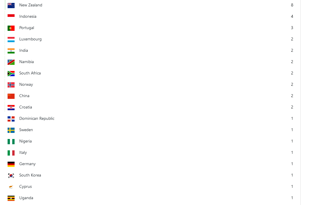 I notice the number for NZ has crept up to 8 – on a par with the Falkland Islands, and they are further south than us. They must enjoy more Scotch than we do in NZ. 🙂